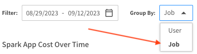 The top part of the cost analysis page is a bar chart showing your Spark application usage metrics on the cluster over time.