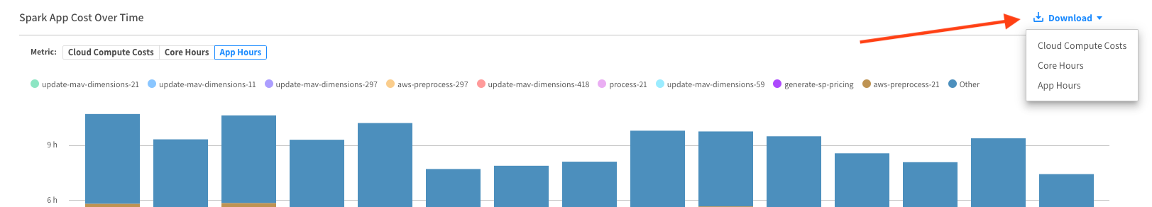 Click Download to download the data that forms any of the above cost analysis bar charts to a CSV file.
