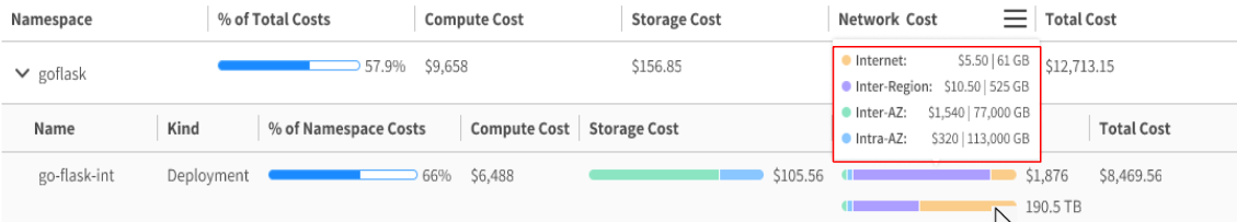 • Only AWS Kubernetes and AKS cost analysis include network costs.